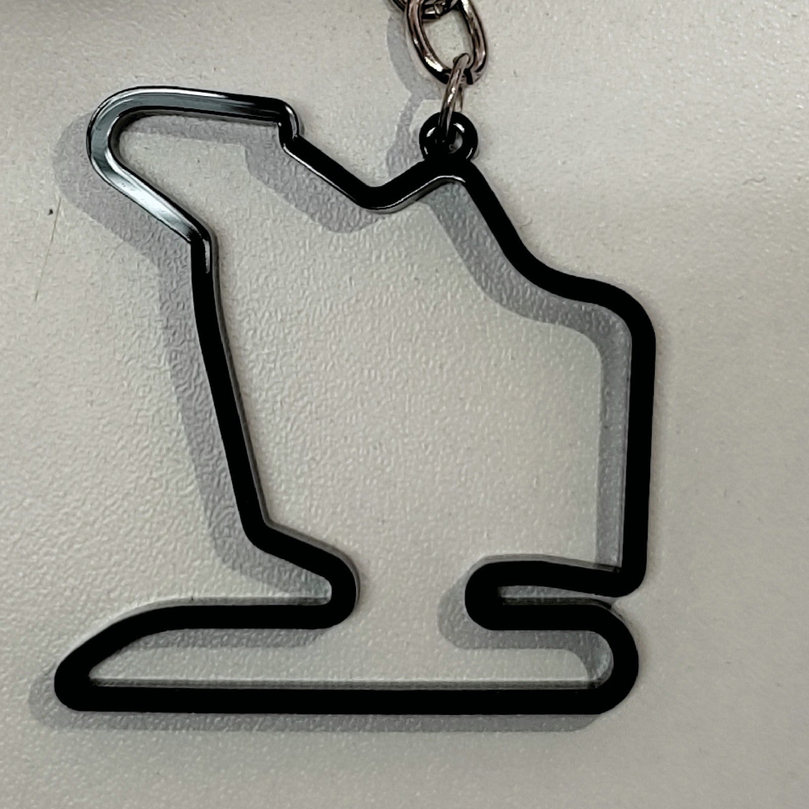 Design: Recorte preciso representando o traçado da pista, com furo para encaixe em chaveiro ou mosquetão.