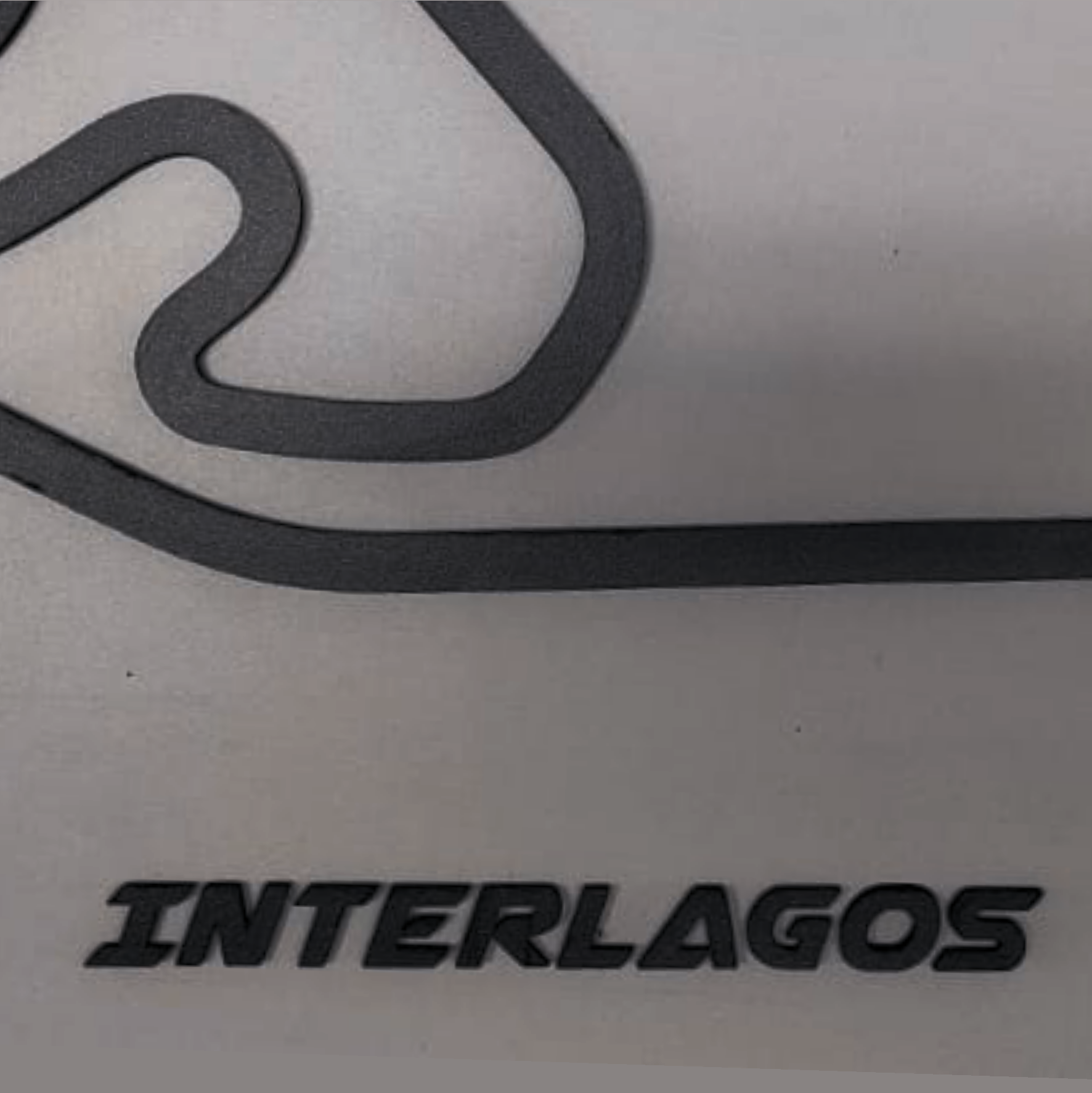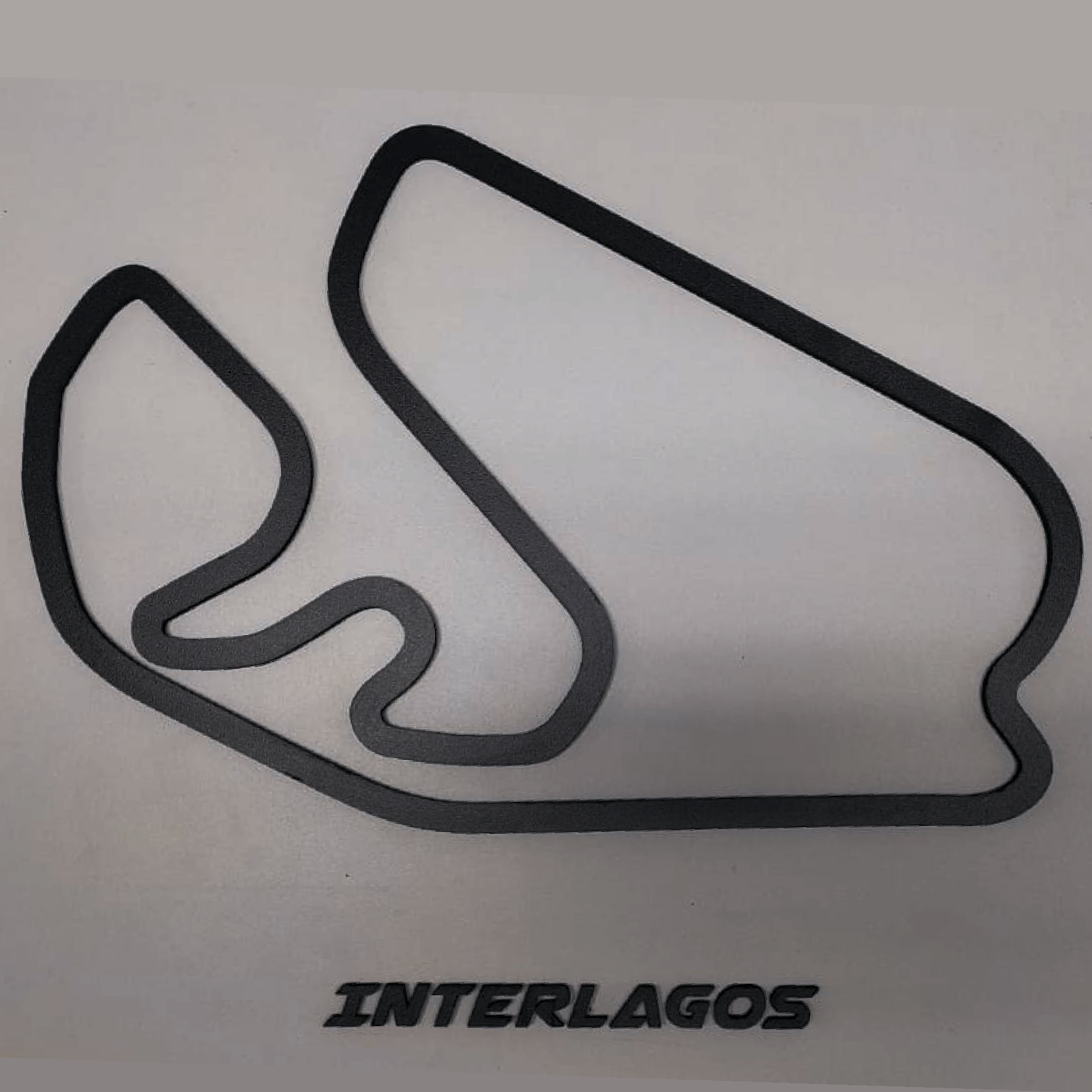 1 Pista Decorativa Track Collection INTERLAGOS, gabarito para instalação do nome da pista , embalada com proteção para transporte seguro.