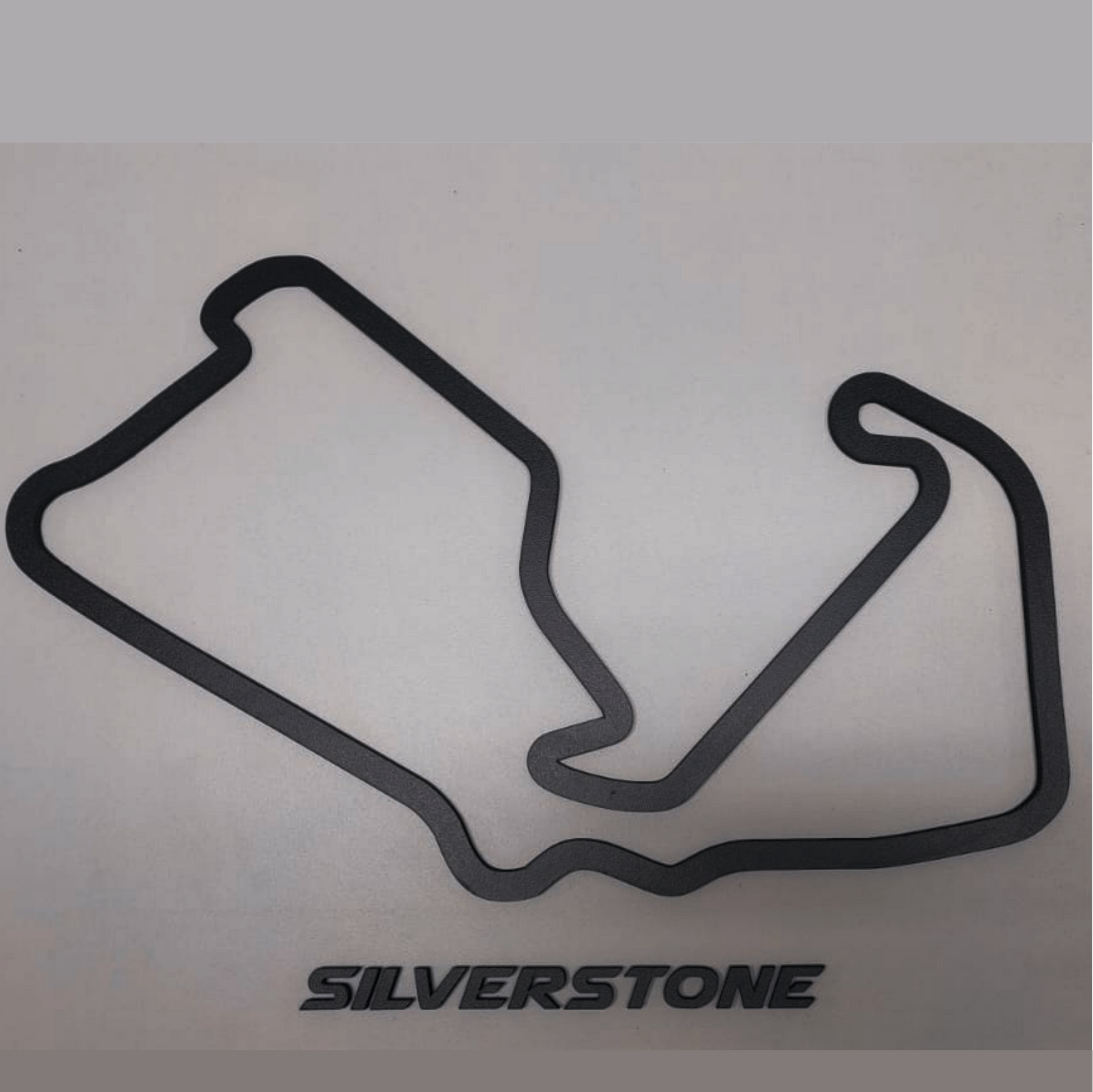 1 Pista Decorativa Track Collection SILVERSTONE , gabarito para instalação do nome da pista , embalada com proteção para transporte seguro.