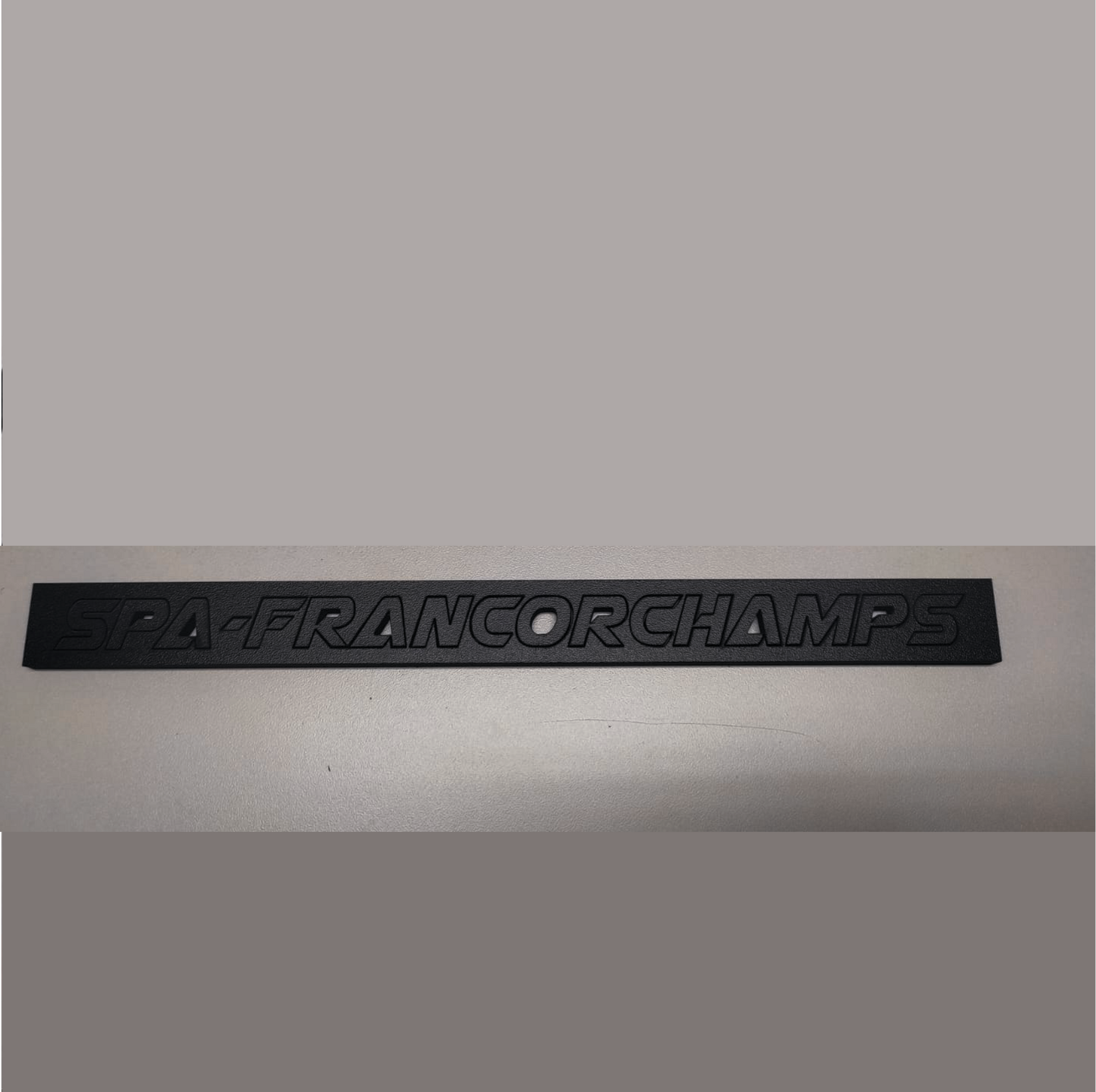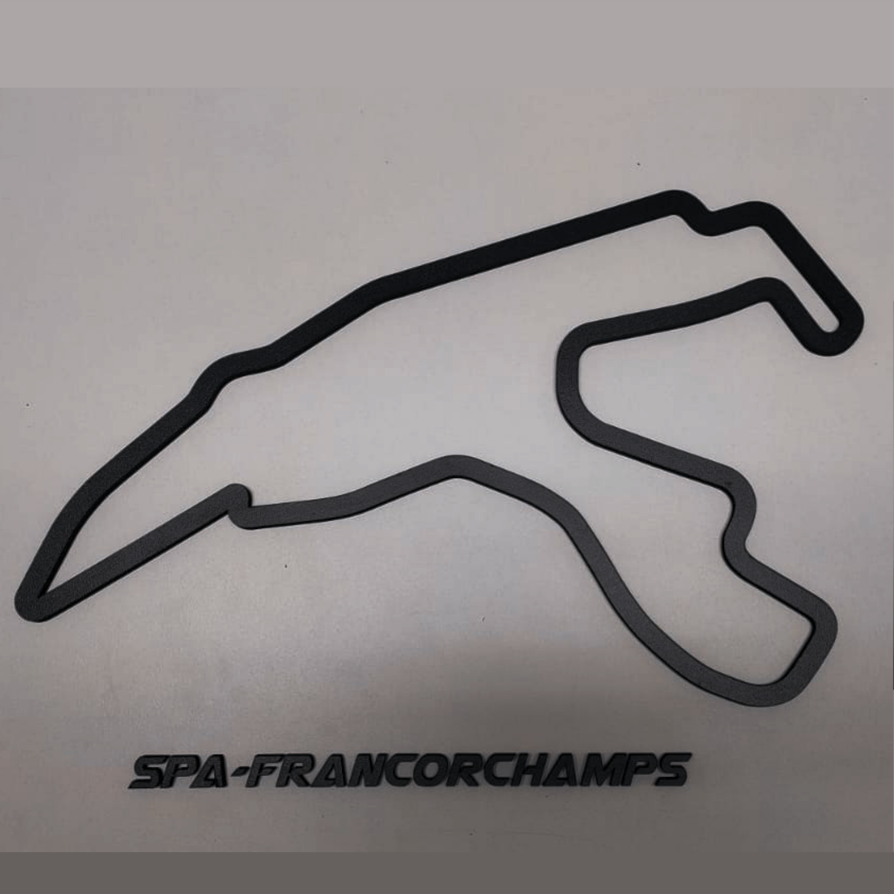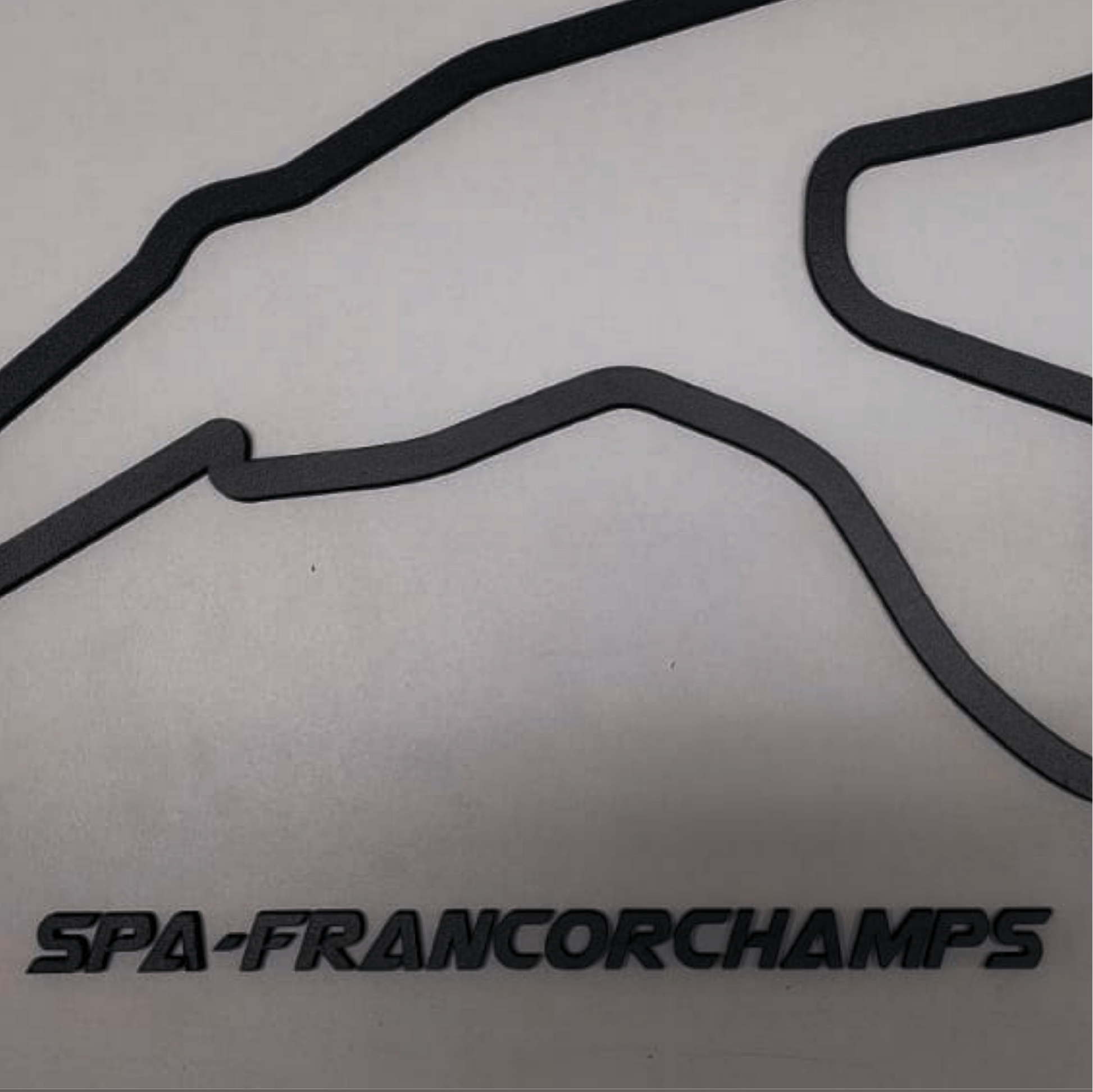 1 Pista Decorativa Track Collection SPA FRANCOCHAMPS, gabarito para instalação do nome da pista , embalada com proteção para transporte seguro.